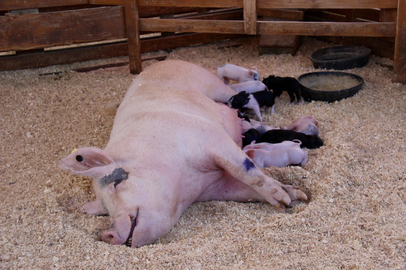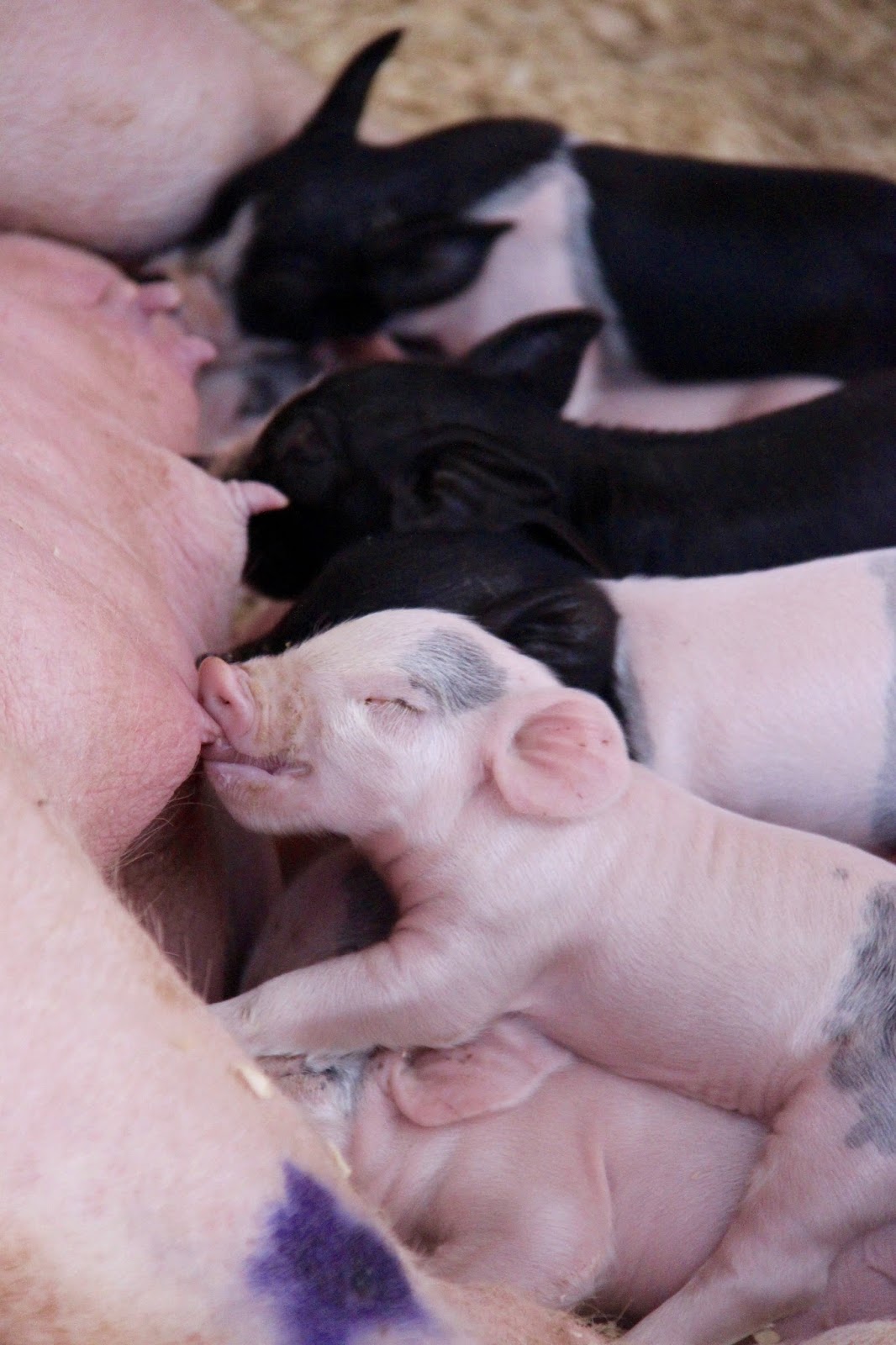 The highlight of my visit was seeing six-day old piglets and their proud Mama Violet. They were so cute, and each had their own unique personality.The other treat was meeting Ruby and Pearl, two-and-half week old Holstein Dairy cows. Those two girls were just adorable and acted a lot like my pups.